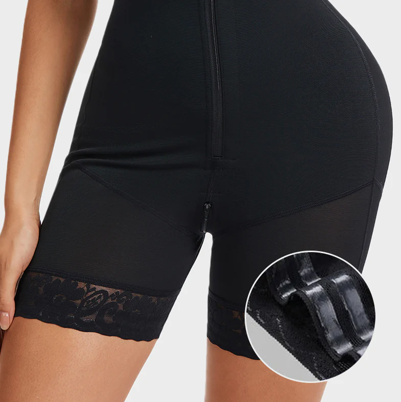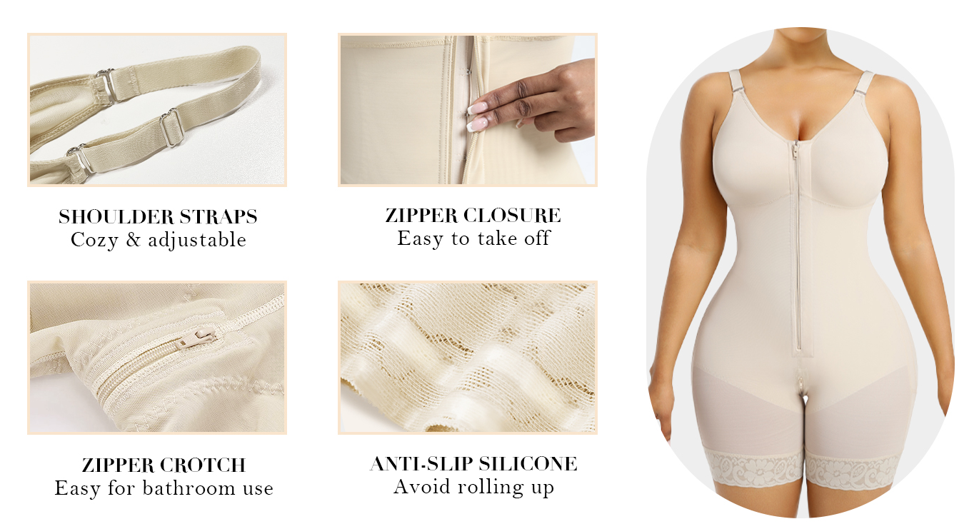 Designed with a built-in bra and high-compression tummy panel, this full-body shaper defines your silhouette from bust to thigh. Adjustable non-slip straps and a zippered crotch make it practical for daily wear, while its sleek shape flatters under any outfit—from dresses to suits.